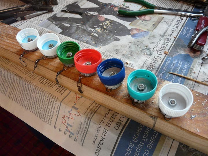 Кормушку можно сделать самостоятельно или приобрести готовую. Среди самодельных кормушек есть очень практичные конструкции, которые обеспечивают доставку прикорма в нужное место. Одна из них изготавливается с использованием крышек от пластиковых бутылок. Используя крышки разных размеров и цветов, можно экспериментировать и добиваться неплохих результатов.